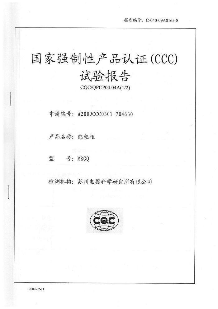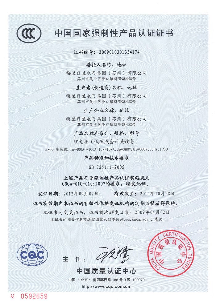 (成套)MRGQ主母線資質(zhì)證書