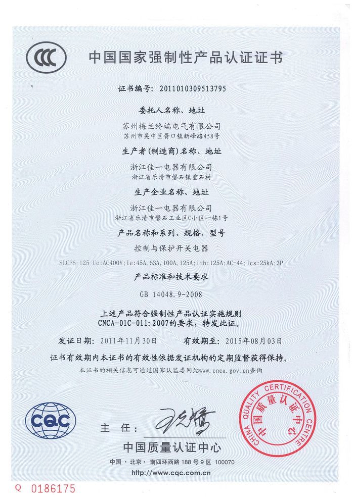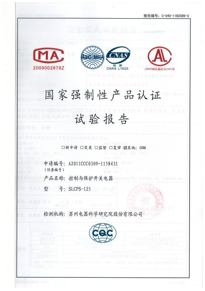 SLCPS-125控制與保護(hù)開(kāi)關(guān)資質(zhì)證書(shū)