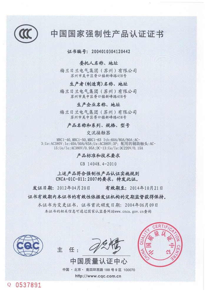 MRC1-40交流資質(zhì)證書