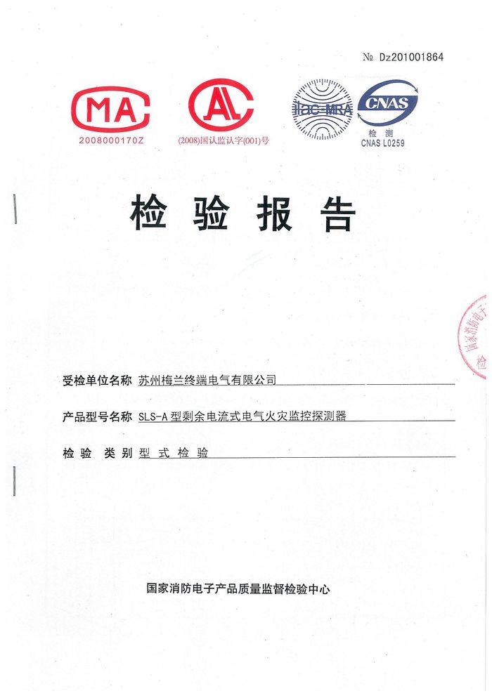 SLS-A型電氣火災(zāi)監(jiān)控資質(zhì)證書(shū)