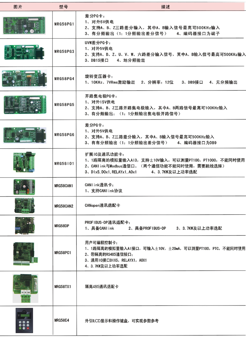 MRG580高性能矢量變頻器是基于MRG280研發(fā)的升級型變頻器,更具有針對性,MRG580在MRG280的基礎上除軟件升級外還添加了多種PG卡,端子功能擴展卡,以及通訊卡等選配件。不同的選配件使MRG580有應用領域更加廣泛。在行業(yè)應用領域中更加專業(yè)。(MRG580配上專用選配件可適用于:紡織、造紙、拉絲機、機床、包裝、食品、空壓機、化工、礦山、鋼鐵、風機、水泵及各種自動化生產設備的驅動)。