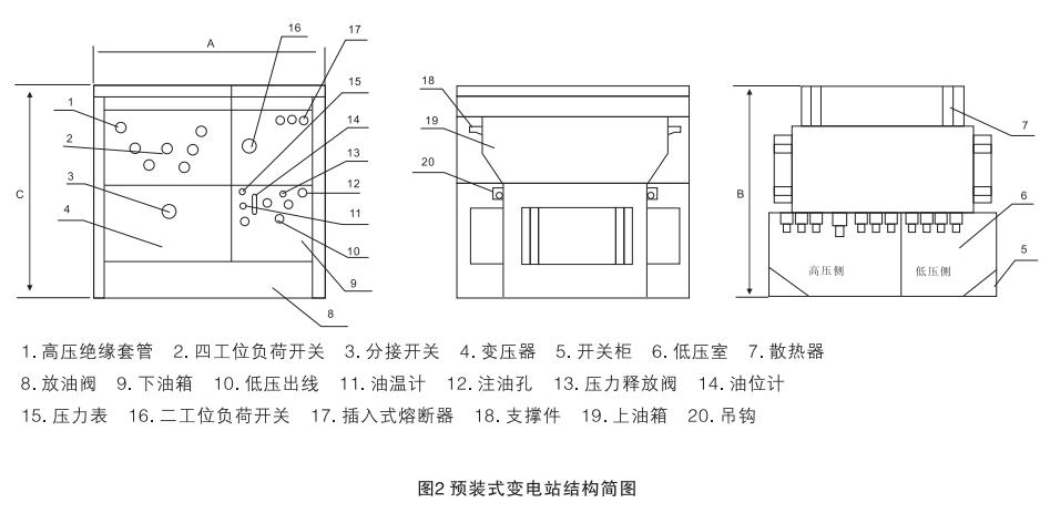 YB27系列預(yù)裝式變電站,適用于10kV環(huán)網(wǎng)供電、雙電源供電或終端供電系統(tǒng)中,作為變電、配電、計(jì)量、補(bǔ)償、控制和保護(hù)裝置。預(yù)裝式變電站內(nèi)除裝有變壓器外,高壓側(cè)還裝有四工位負(fù)荷開關(guān)、二工位負(fù)荷開關(guān)、后備保護(hù)熔斷器及插入式熔斷器;低壓側(cè)按用戶要求可裝控制電器、配電電器、補(bǔ)償裝置及計(jì)量表計(jì)等,以變壓器油作為絕緣和來弧介質(zhì)。